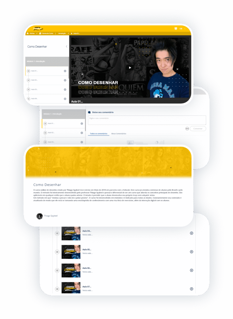O curso online de desenho criado por Thiago Spyked teve estreia em Maio de 2018 em parceria com a Kebook.